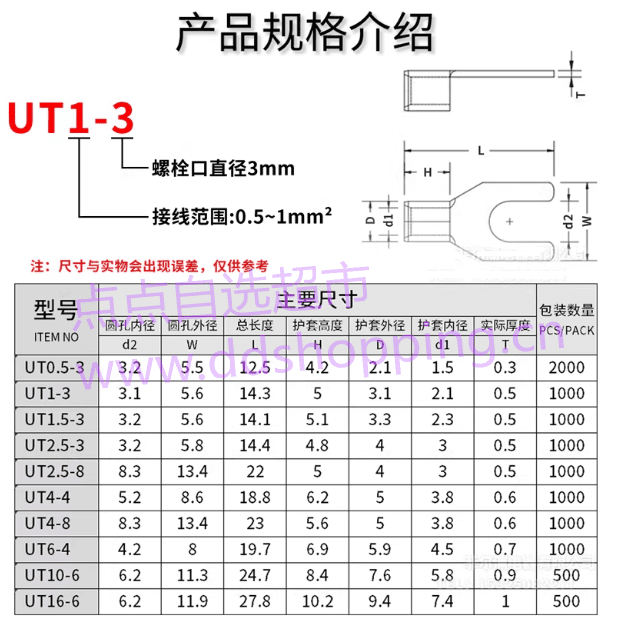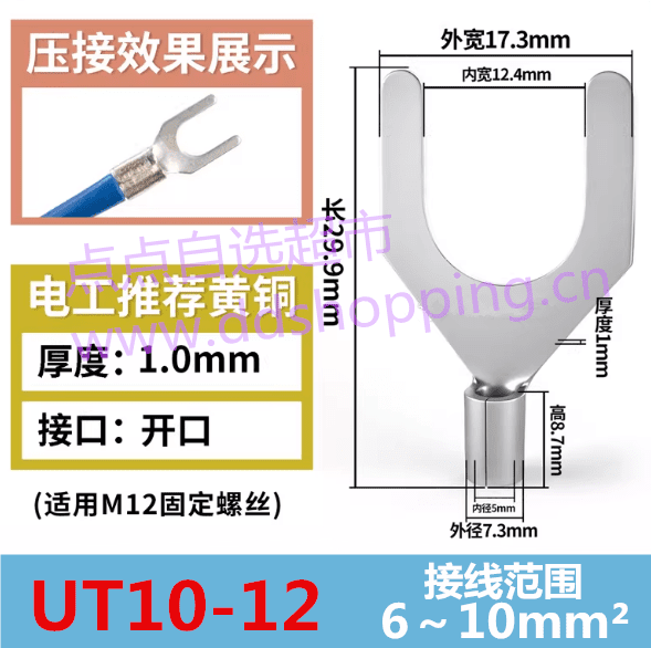 UT叉型冷压接线端子 黄铜标准款 接线范围0.5~16mm2