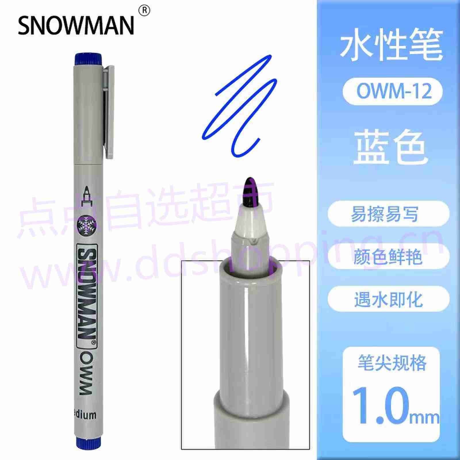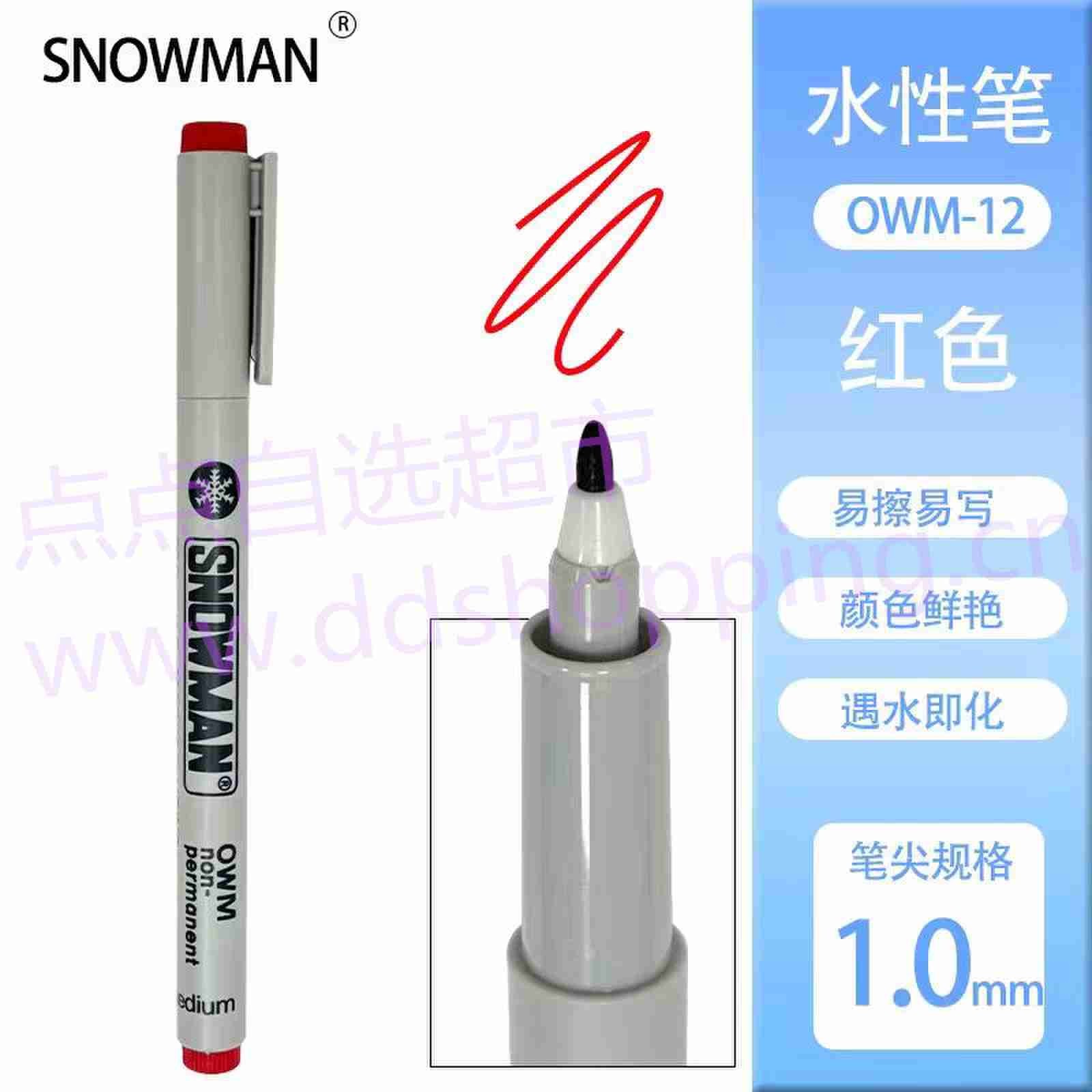 雪人水性笔OWM-12 水溶性记号笔 水洗笔 笔尖1.0