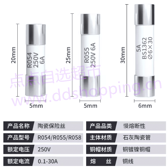 陶瓷保险丝R054 保险管 熔断器熔芯Φ5*20系列 100支装