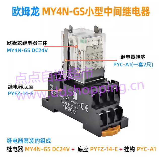 正品欧姆龙OMRON中间继电器MY4N-GS 可配底座PYFZ-14-E