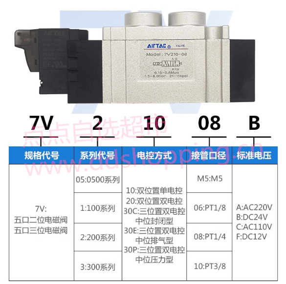 原装正品亚德客电磁阀7V110-J06 快插接头型仅配合底座使用