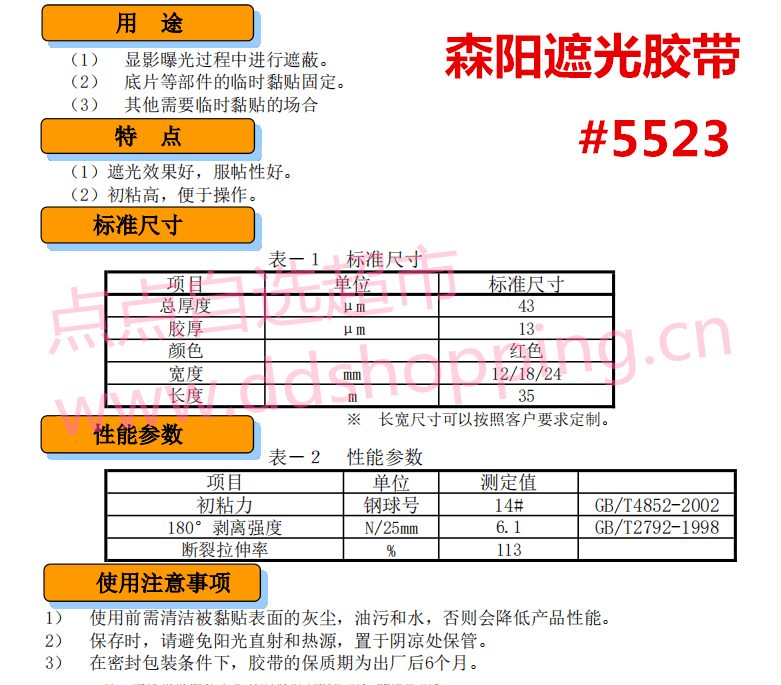 森阳红色遮光胶带5523 替代积水遮光胶带