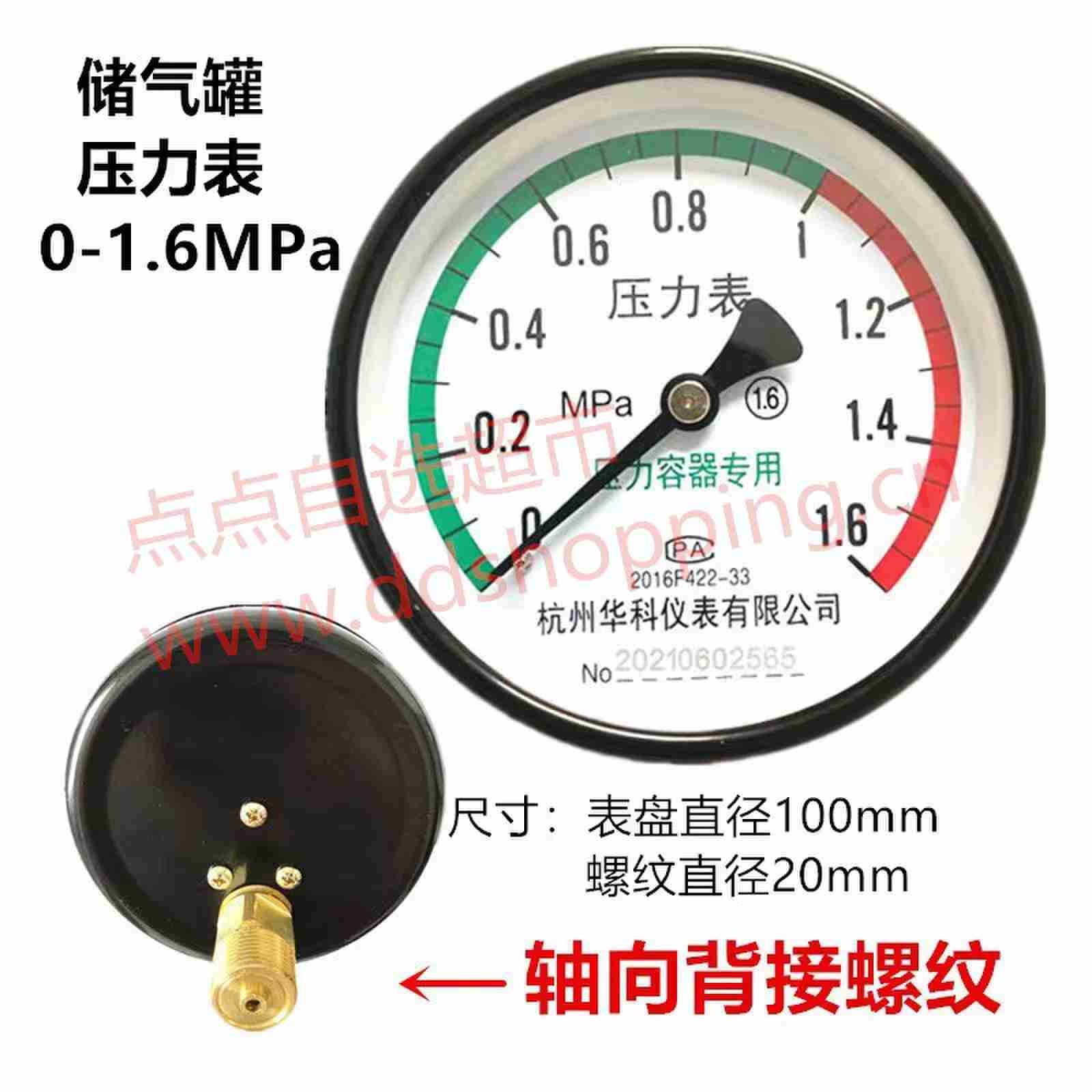 华科空压机气压表Y100Z 轴向/径向压力表