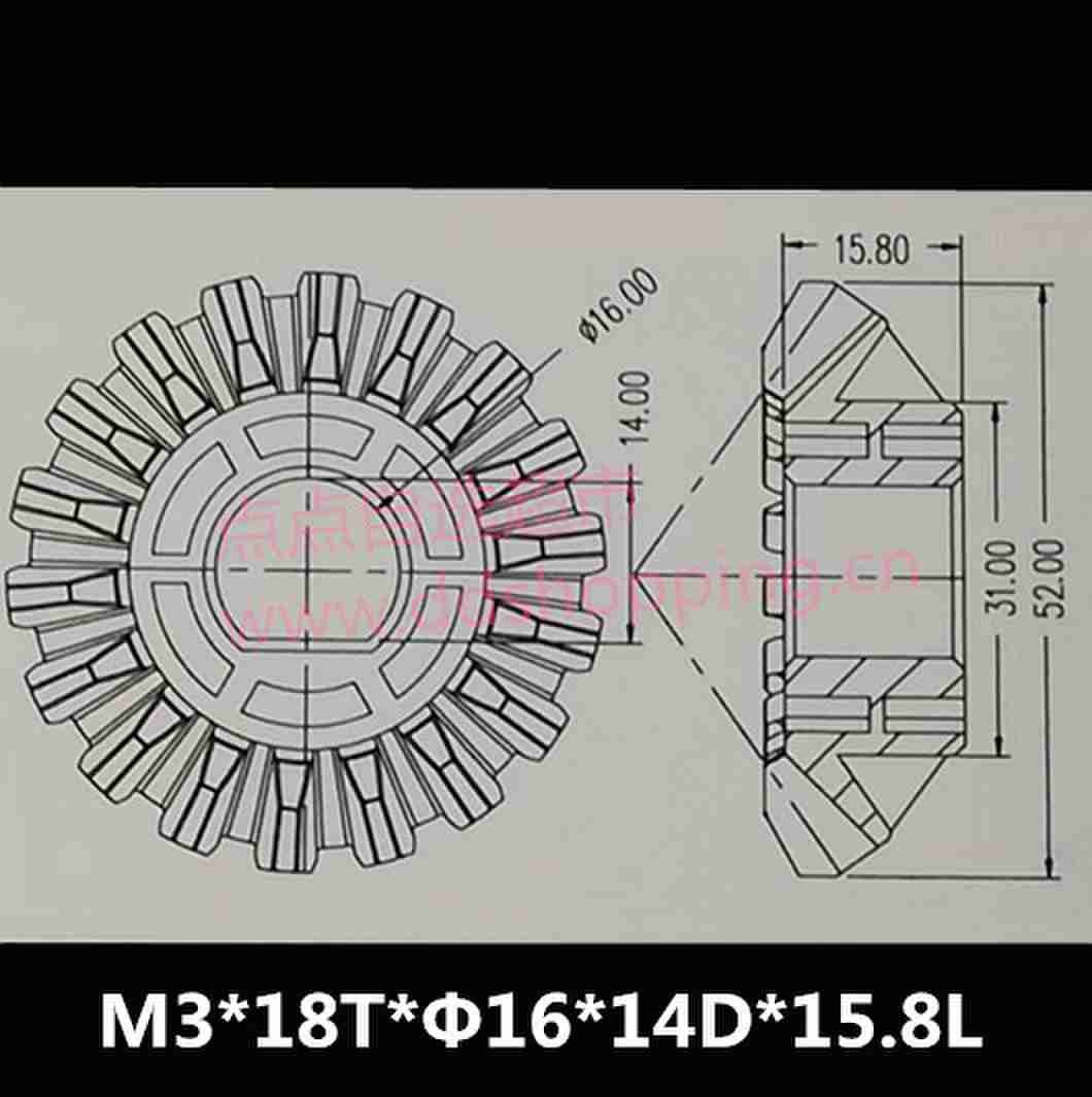 18齿伞齿轮 外径Φ52*Φ16*14D*15.8L