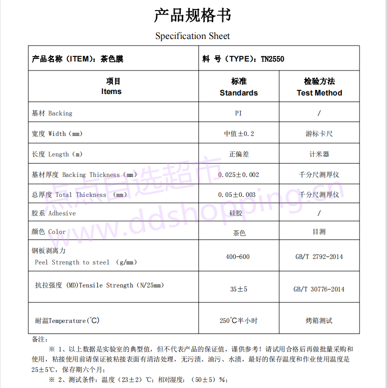 茶色高温PI单面胶带TN2550 粘度400-600g