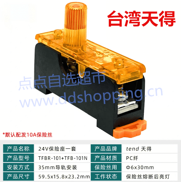 台湾天得保险座 保险丝熔断器 导轨安装 TFBR-101