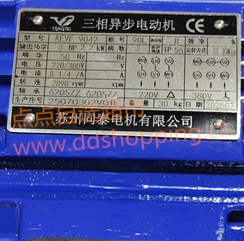 同泰三相异步电动机 电机马达AEVF9042 框号90L 3HP/2.2KW