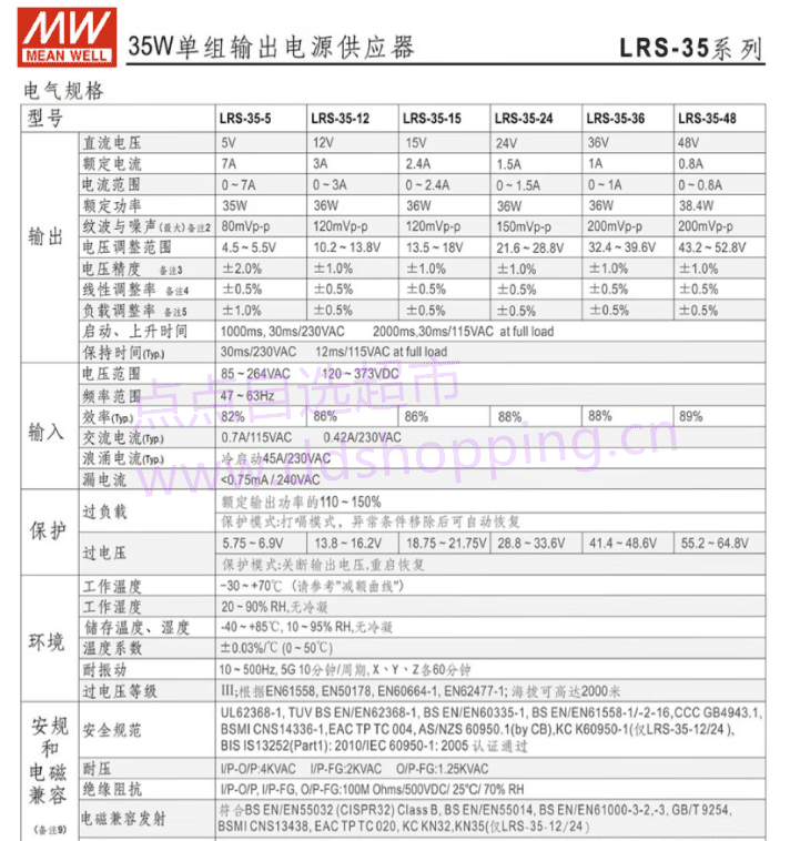 正品台湾明纬直流开关电源 LRS-35系列