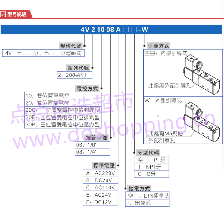 正品亚德客电磁阀4V210-08