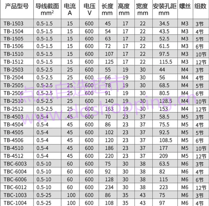配电箱接线端子座 TB系列