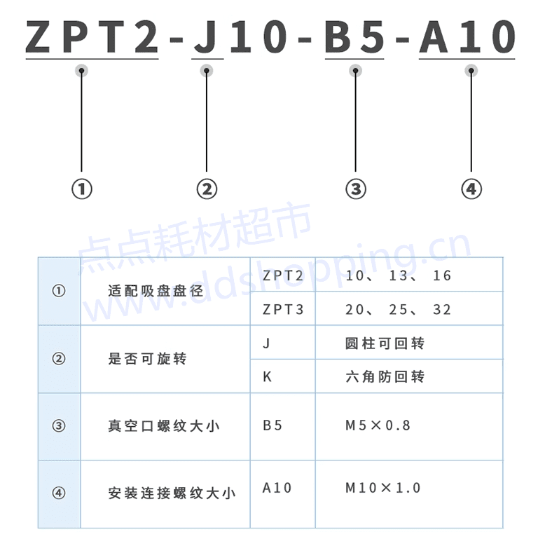 真空吸盘金具ZPT2-J20-B5-A10 定制长85