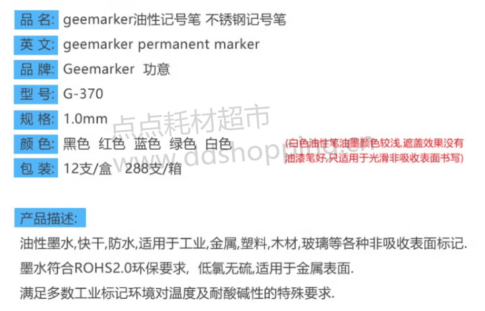 功意Geemarker油性笔 G-380 速干耐温150度 耐酸碱