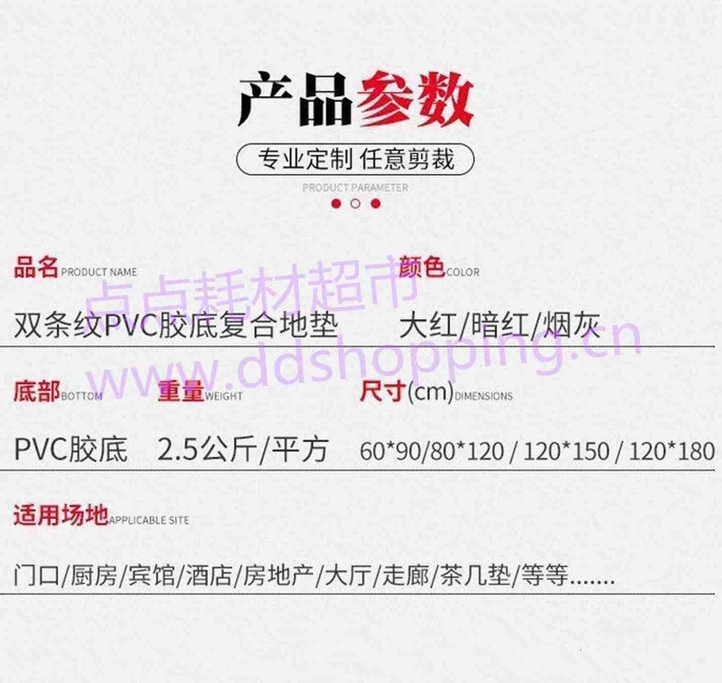 双条纹吸水防滑地垫地毯 毯面吸水耐磨底部防滑不漏水 厚约6-7MM