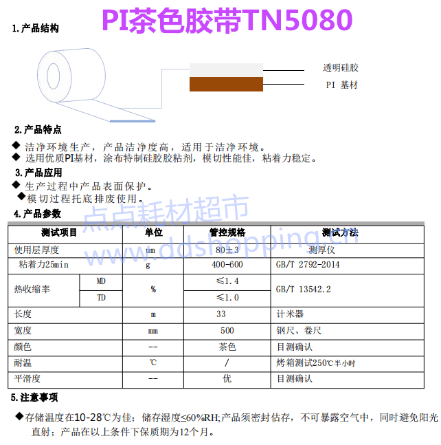 茶色高温PI单面胶带TN5080 粘度400-600g