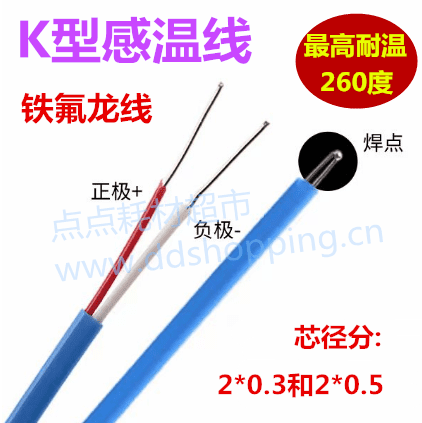 K型感温线K-2*0.5 蓝色铁氟龙/耐温260度 100米/卷