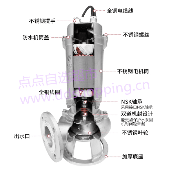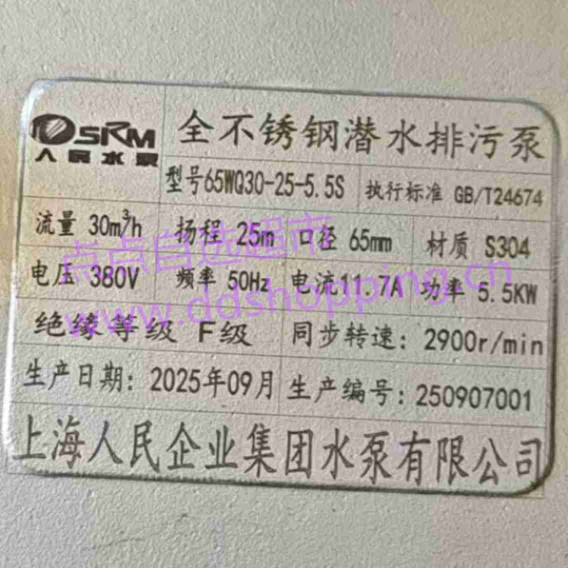 人企304污水泵 防腐耐酸碱潜水泵 65WQ30-25-5.5S