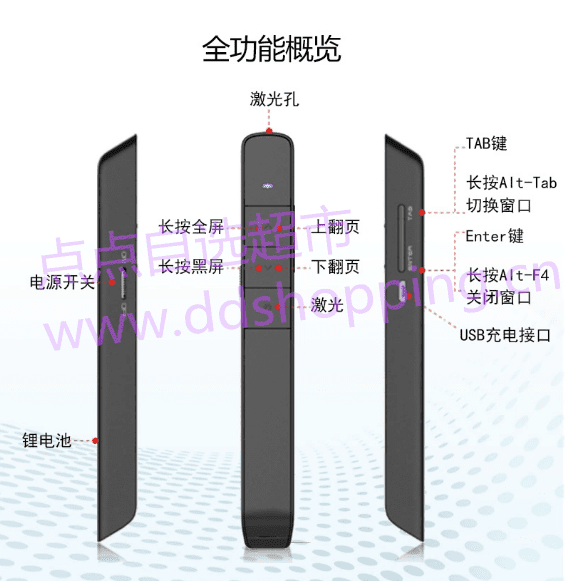 Asing激光笔A17 激光PPT翻页笔 投影笔 大功率绿光LED屏可用