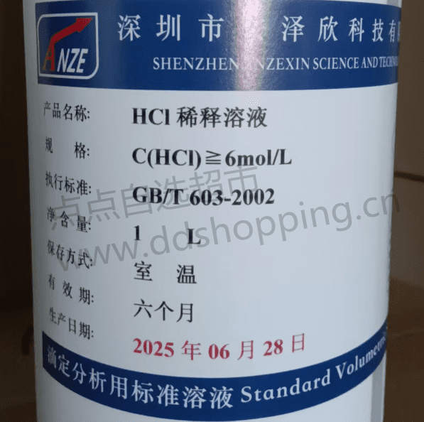 盐酸标液 c(HCL)标准溶液 1L/瓶 安泽欣