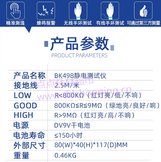 邦泰信静电测试仪 防静电手环报警检测器BA498