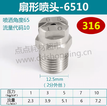 316不锈钢喷咀 扇形 2分外牙/12.5MM 1/4牙
