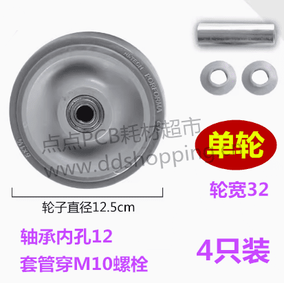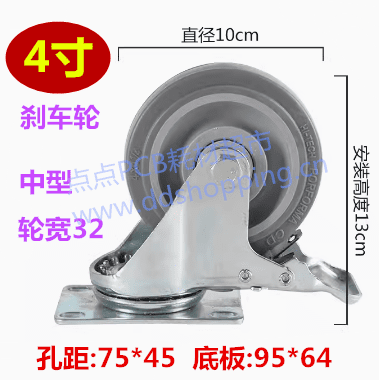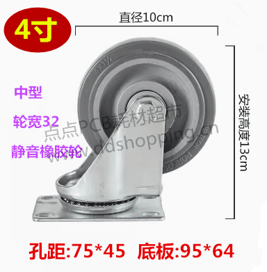 4寸推车轮 脚轮 静音橡胶轮 中型/孔距75*45