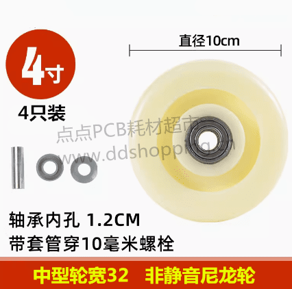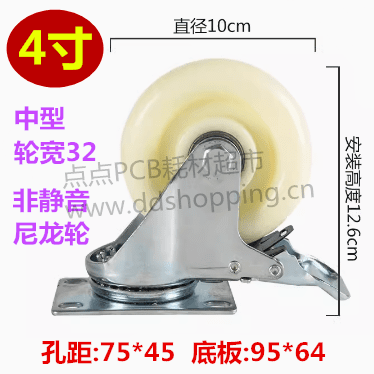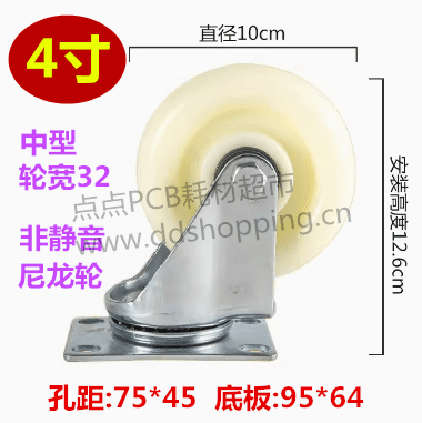 4寸推车轮 脚轮 非静音尼龙轮 中型/孔距75*45