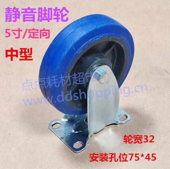5寸推车轮 脚轮 静音橡胶轮 中型/孔距75*45
