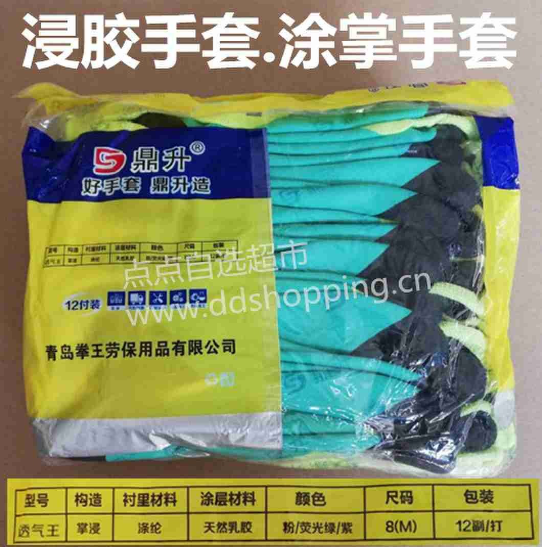 鼎升透气王手套 涂掌手套 荧光绿五指加强耐磨