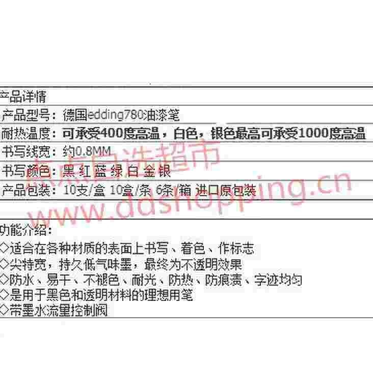 edding艾迪780针头油漆笔 耐酒精耐高温400度 线幅0.8