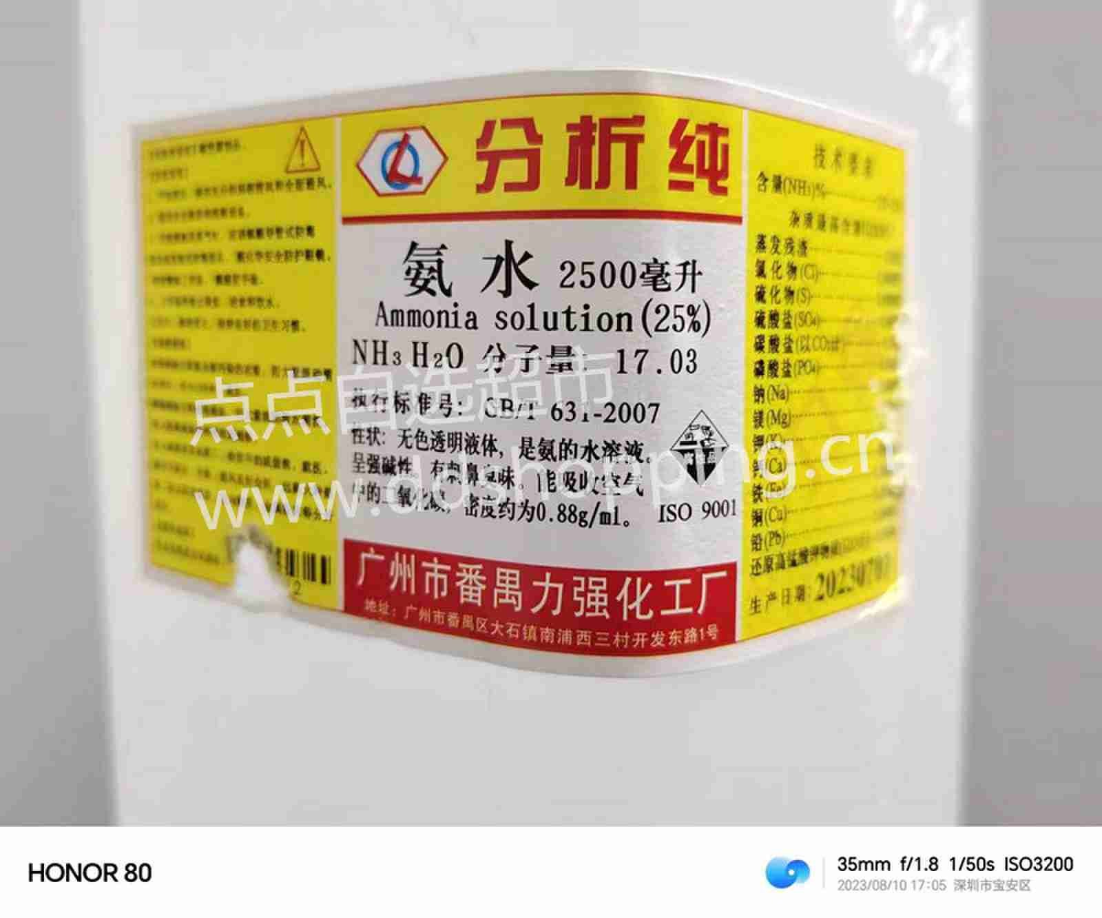 力强氨水 分析纯/浓度25% 报价商品