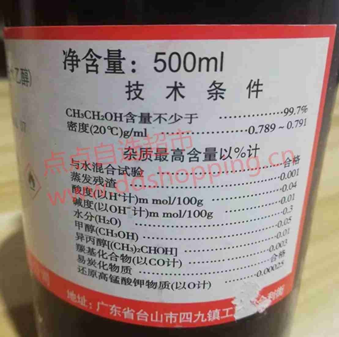 粤侨无水乙醇 分析纯AR 玻璃瓶不支持快递