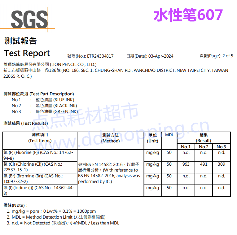 雄狮水洗笔607# 水性记号笔 可提供卤素报告