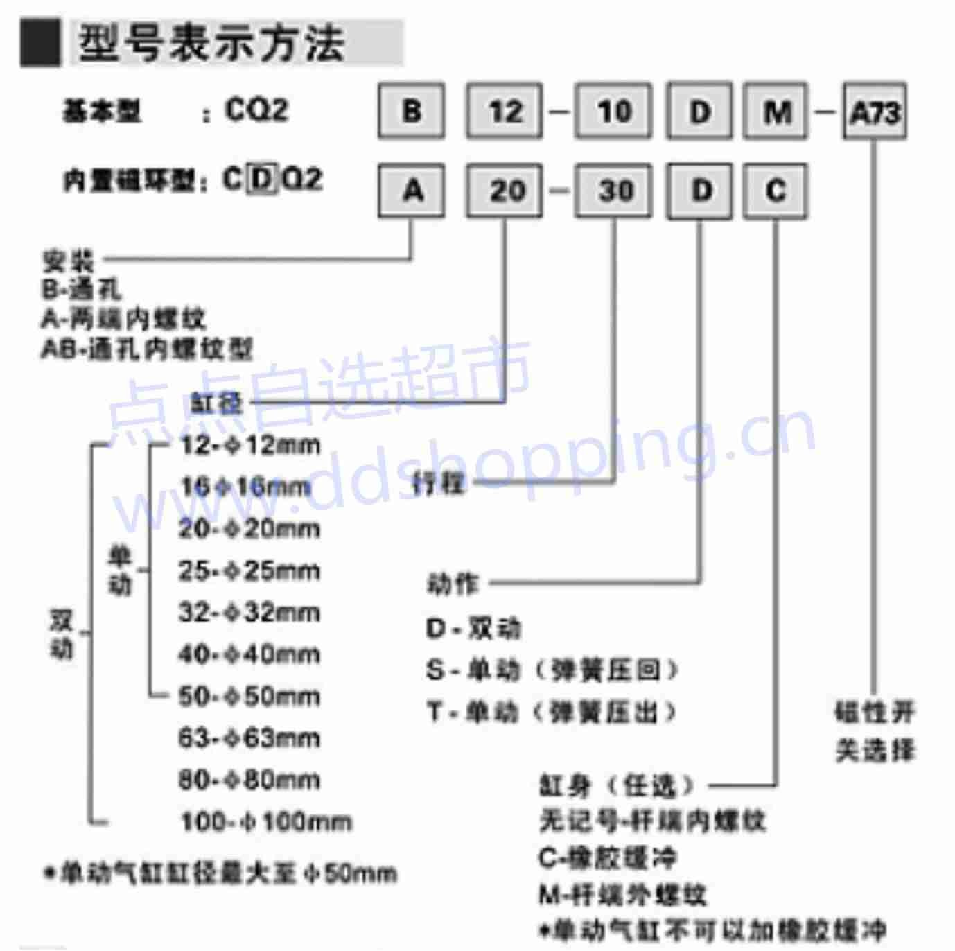 天顺达气缸 CQ2B系列 缸径50