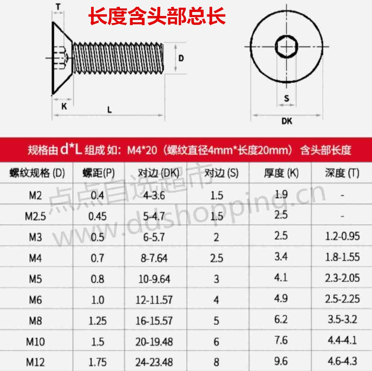 喇叭平头内六角螺丝 平锥头螺丝螺杆 沉头 304