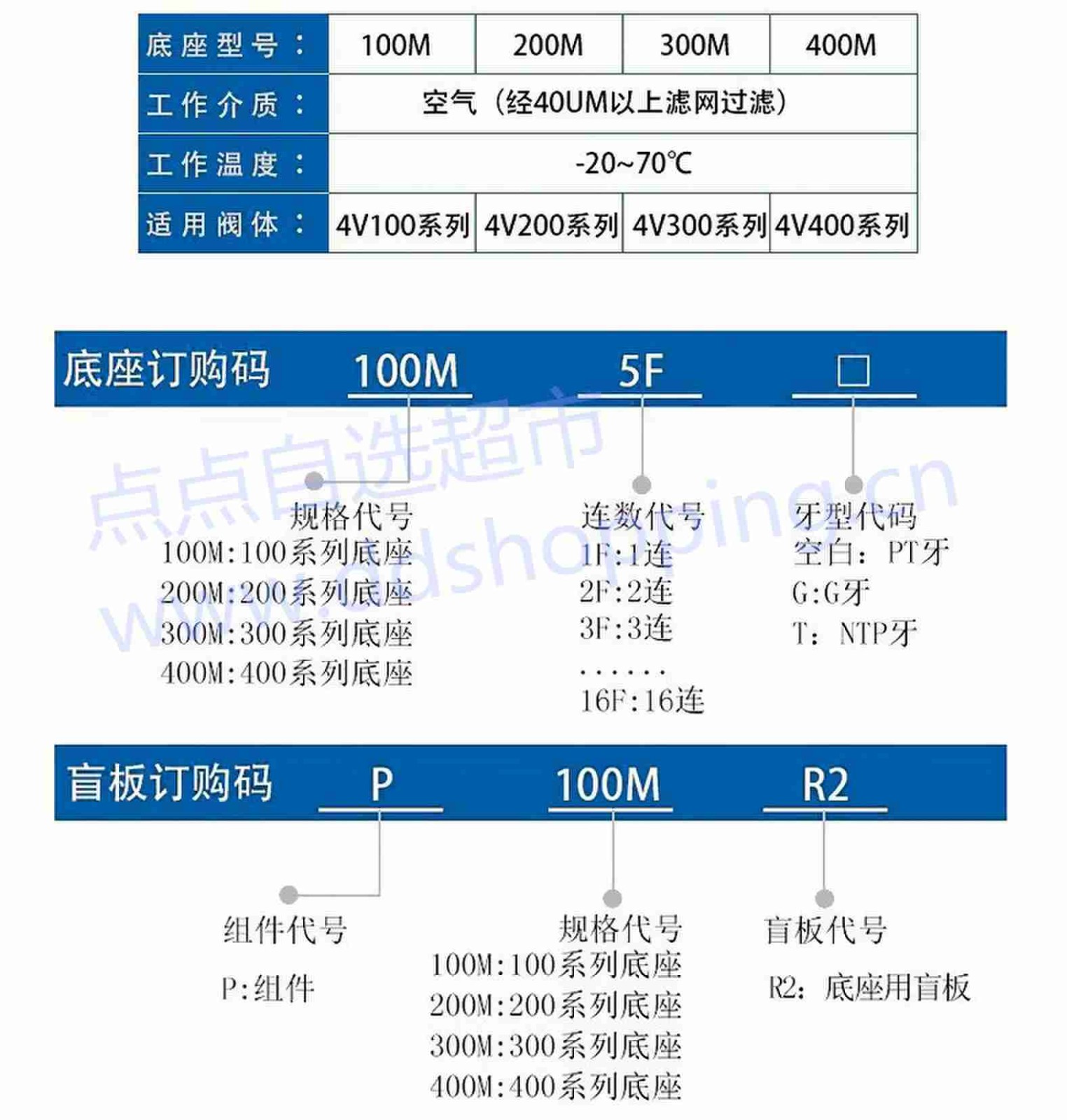 普世达电磁阀底座 适用4V210/4V220/4V230电磁阀
