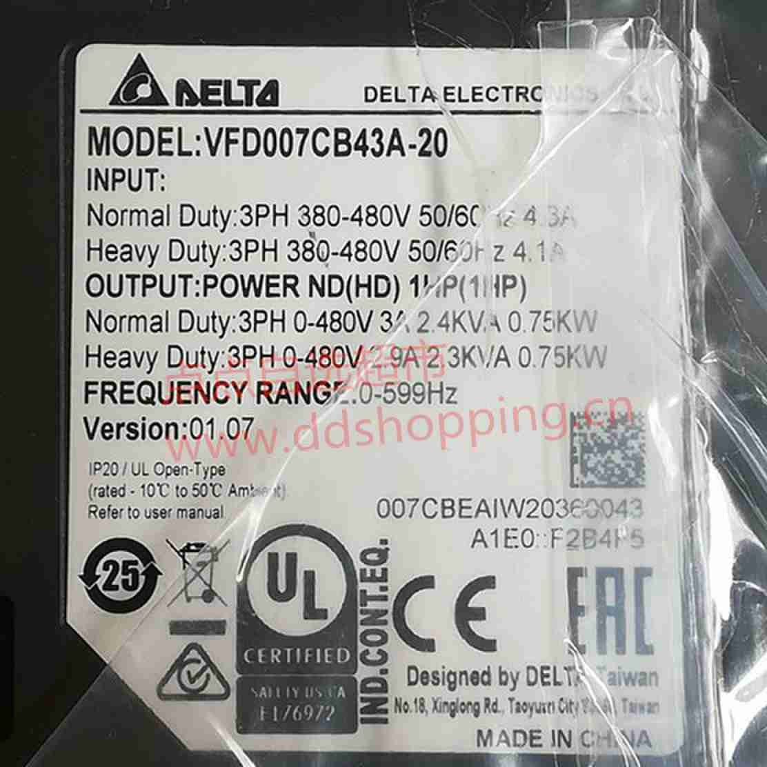 台达小型变频器 C200系列 VFD007CB43A-20
