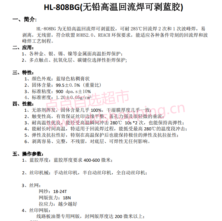众晶鑫可剥蓝胶 回流焊型HL-808BG 替代PETERS SD2955